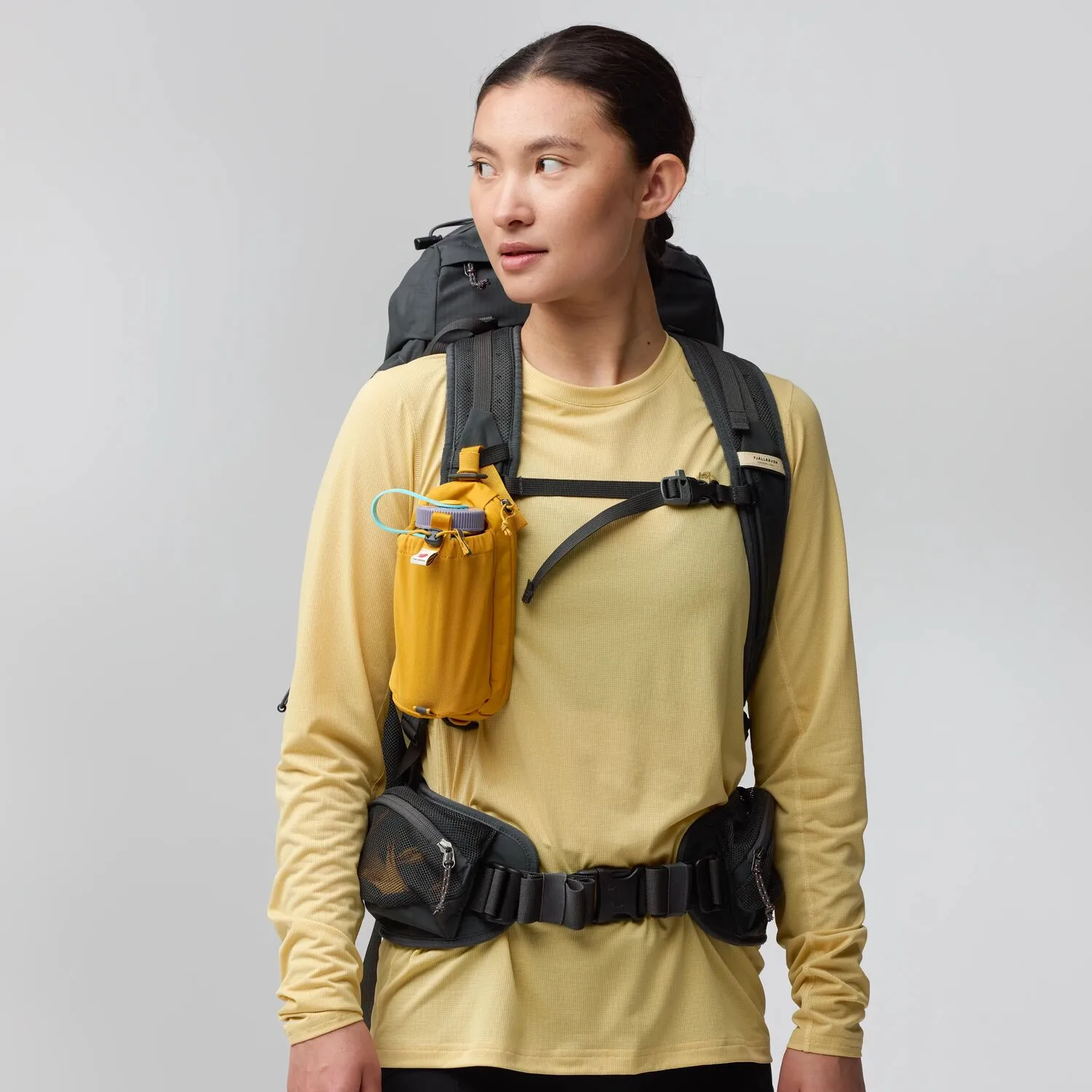 Poboljšajte funkcionalnost svog ruksaka u tren oka s Fjällrävenovim Abisko džepom za bocu. Lako se pričvršćuje na bilo koji ruksak koji ima traku od tkanine na naramenici u visini ramena. Prednji dio koji se u potpunosti rasteže stanu boce do 750 ml, a tu je i džep na patentni zatvarač za držanje telefona ili grickalica. Tu je i odvojivi remen kako biste pretvorili džep za bocu u malu torbicu preko ramena ili ga pričvrstili na Abisko Softpack 16 kao pojas za struk. Izrađen od recikliranih tkanina.